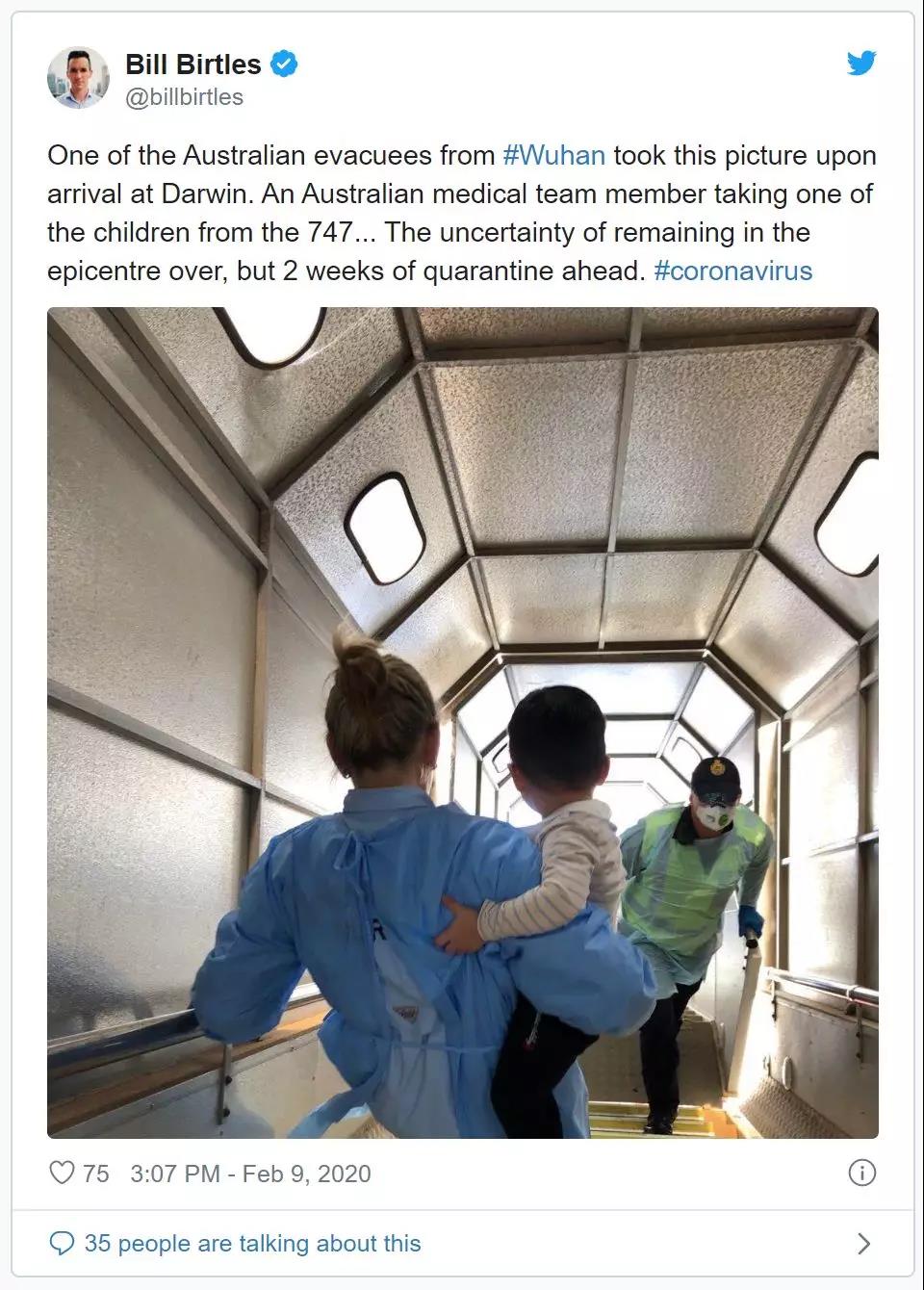 擔(dān)心年幼的孩子獨(dú)自下飛機(jī)不安全,澳洲醫(yī)療隊(duì)的一位工作人員直接把孩子抱了下來。