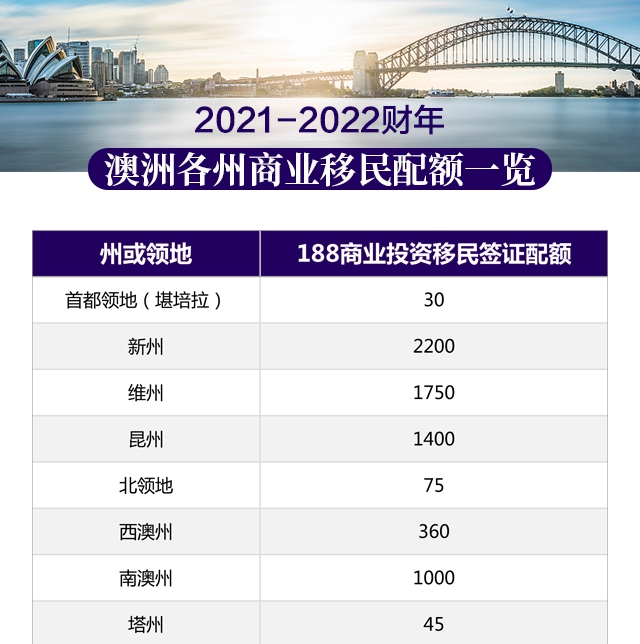 2021-22財(cái)年澳洲商業(yè)投資移民配額分布