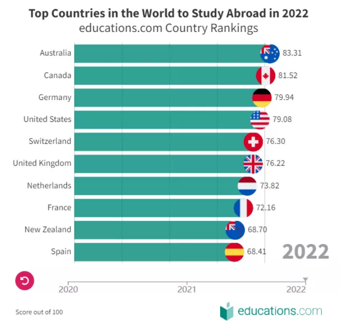 2022世界最佳留學國排名公布,英美沒進前三,第一竟是它!