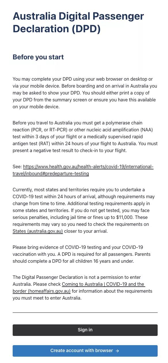 Coming to australia→Digital Passenger Declaration→ Complete your declaration→ Digital Passenger Declaration online