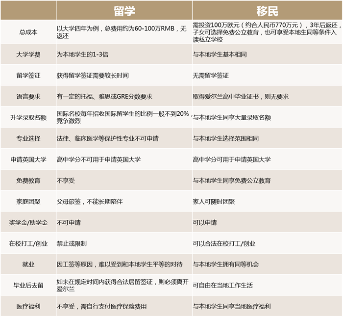 而對于以國際學生身份在海外接受教育的留學生來說,可能將會受到一些不公平的待遇。以愛爾蘭為例,選擇直接送孩子前往愛爾蘭留學,和先為孩子規(guī)劃愛爾蘭身份,再到當?shù)亟邮芙逃齼煞N方式之間,存在著巨大的差異: