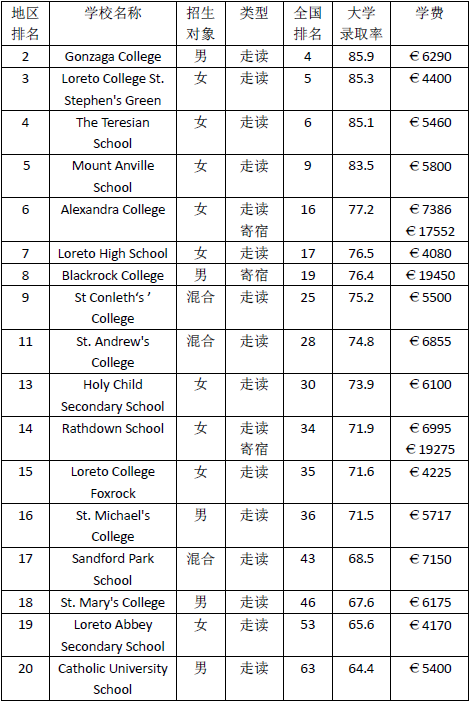 (據(jù)2018年Sunday Times愛爾蘭學(xué)校排名榜)