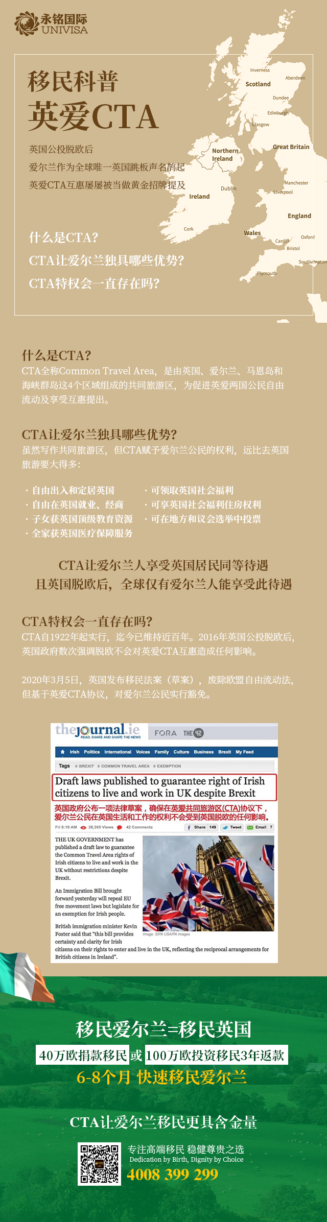 英脫歐過渡期結束后,愛爾蘭成為歐盟27國里唯一能夠維持在英權益不變、連接英國與歐盟的國家,對愛爾蘭來說還是能提升歐盟話語權的絕佳機遇。這主要歸因于英國與愛爾蘭簽訂的CTA互惠協(xié)議,它讓英、愛兩國公民可以互享自由定居、工作、學習、社會福利等特權。