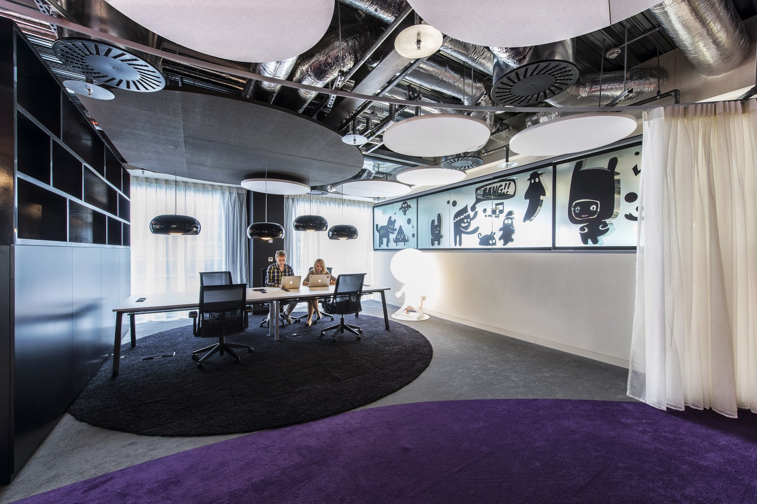 該辦公大樓由四座建筑組成,置身其中仿佛置身一個(gè)大型藝術(shù)館,為谷歌員工提供了一個(gè)絕佳的辦公及休閑空間。除了創(chuàng)新的辦公空間,還包括多個(gè)附加功能,如5個(gè)餐廳、42個(gè)微型廚房和交流中心、游戲室、健身中心、游泳館、會(huì)議學(xué)習(xí)和發(fā)展中心、技術(shù)站、超過(guò)400個(gè)非正式和正式的會(huì)議室和電話亭等。