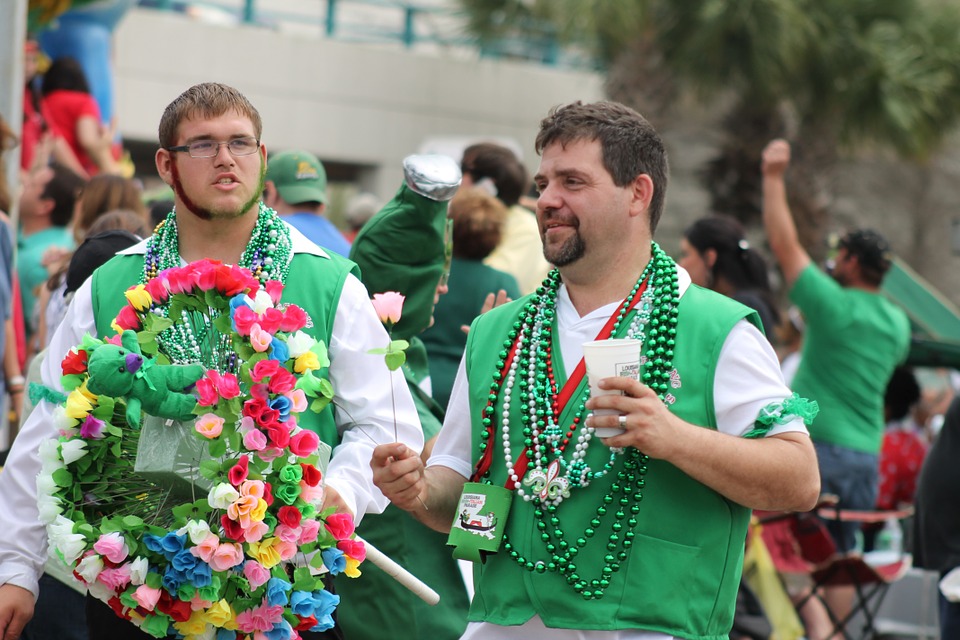 愛爾蘭國旗由綠、白、橙三色組成,綠色代表信仰天主教的愛爾蘭人,也象征愛爾蘭的綠色寶島;愛爾蘭的國花是象征幸運的綠色三葉草,在愛爾蘭國慶節(jié)(St Patrick’s Day)當(dāng)天,舉國上下都會“綠意盎然”,愛爾蘭人會頭戴綠帽、身著綠衣開心慶祝。