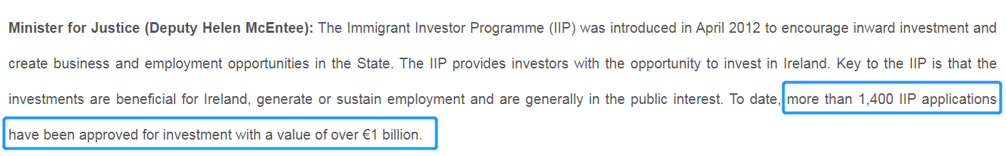 自愛爾蘭推出投資移民計(jì)劃(IIP)至今,全球共有1400多組家庭成功獲批,為愛爾蘭吸引投資價(jià)值超過10億歐元。