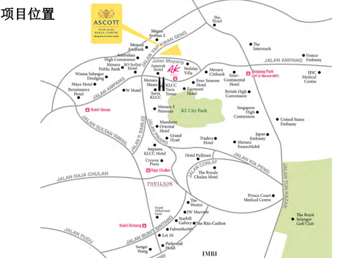 Star residence 位于吉隆坡市中心 Mayang 路和葉觀盛路,步行 15 分鐘即可到達(dá) KLCC 雙子塔,距離吉隆坡國際機(jī)場 43 分鐘車程,步行兩分鐘到 KLCC 捷運站,距 KLCC 國際會議中心 10分鐘路程,周圍聚集有眾多高級商場、寫字樓、俱樂部及大使館等。