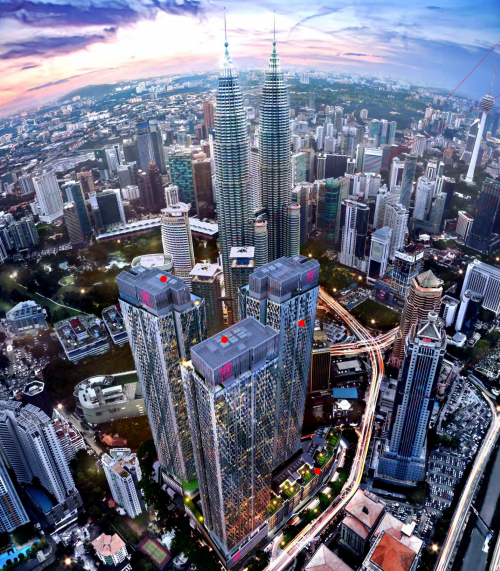 Star Residences坐落在吉隆坡Jalan Yap Kwan Seng,占地4英畝擁有永久產(chǎn)權(quán)的綜合商業(yè)與住宅為一體的綜合發(fā)展規(guī)劃,距離雙子塔僅300米的距離,擁有5層樓的餐飲與娛樂商鋪, 3棟共57層樓高的住宅項目,以W酒店概念 (W Hotel concept) 所啟發(fā)。結(jié)合了時尚與藝術(shù),擁有著恒星的裝扮與夜空抽象的設(shè)計藝術(shù),公寓外觀運用金屬和有色紋理是用來強(qiáng)調(diào)Star公寓的“時尚與城市的門面”;并配有占地1100㎡的生活設(shè)施(相當(dāng)于2個足球場)。