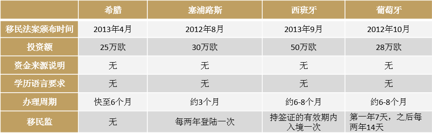 兩國分別于2012年(葡萄牙)和2013年(西班牙)推出黃金簽證制度,非歐盟國家公民購置28萬歐元以上的房產(chǎn)即可獲得葡萄牙黃金居留權(quán),購置50萬歐元以上的房產(chǎn)即可獲得西班牙黃金居留權(quán),黃金居留權(quán)屬于臨時(shí)居留權(quán),但是可以持續(xù)續(xù)簽,幾乎沒有移民監(jiān),當(dāng)居住滿一定年限后,臨時(shí)留權(quán)就可以申請換成永久居留權(quán),或者直接入籍。