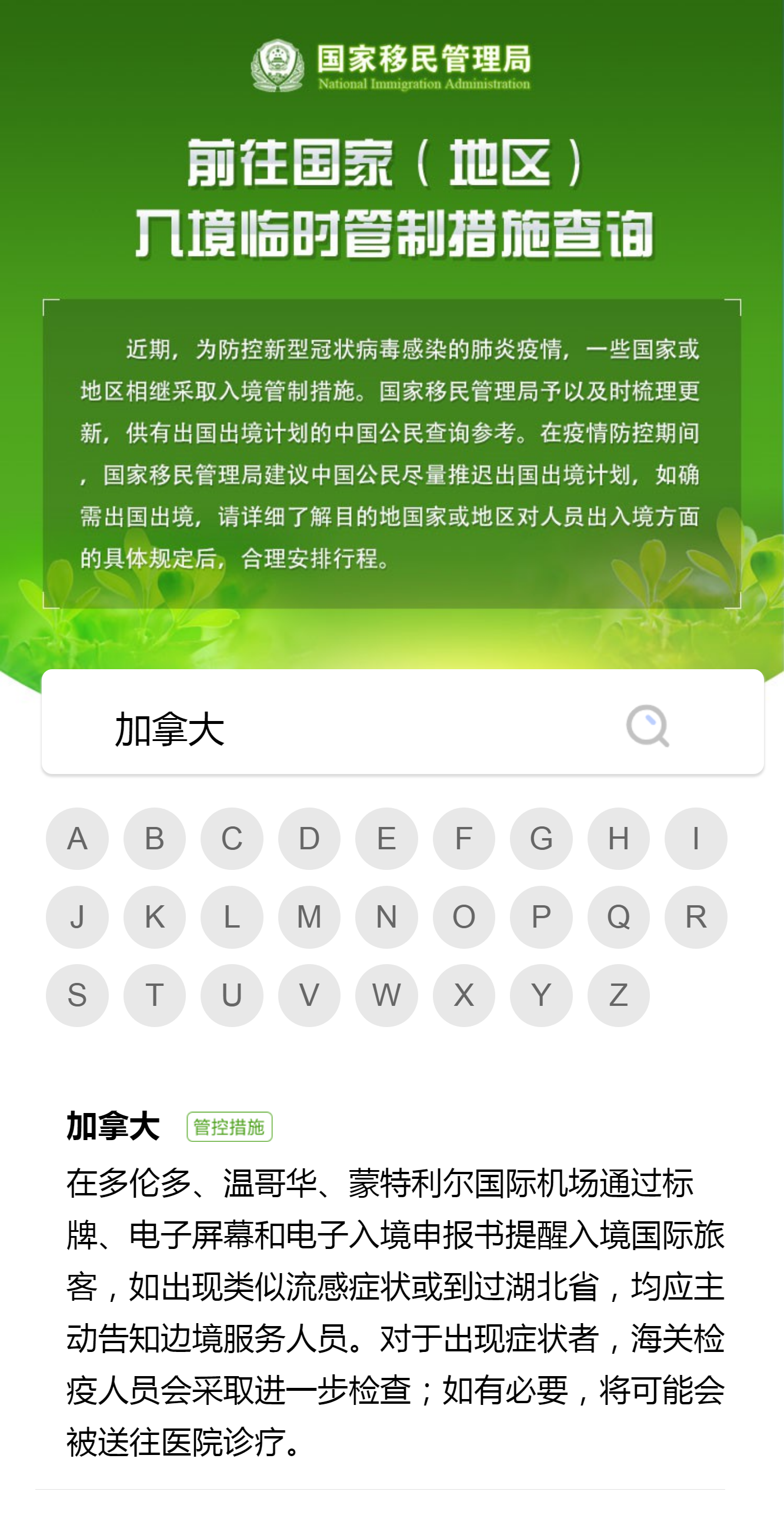 2月7日,國家移民管理局正式上線“出入境信息一鍵通”查詢服務(wù),向社會提供疫情防控期間相關(guān)國家和地區(qū)采取的臨時入境管制措施和我國口岸通行情況。