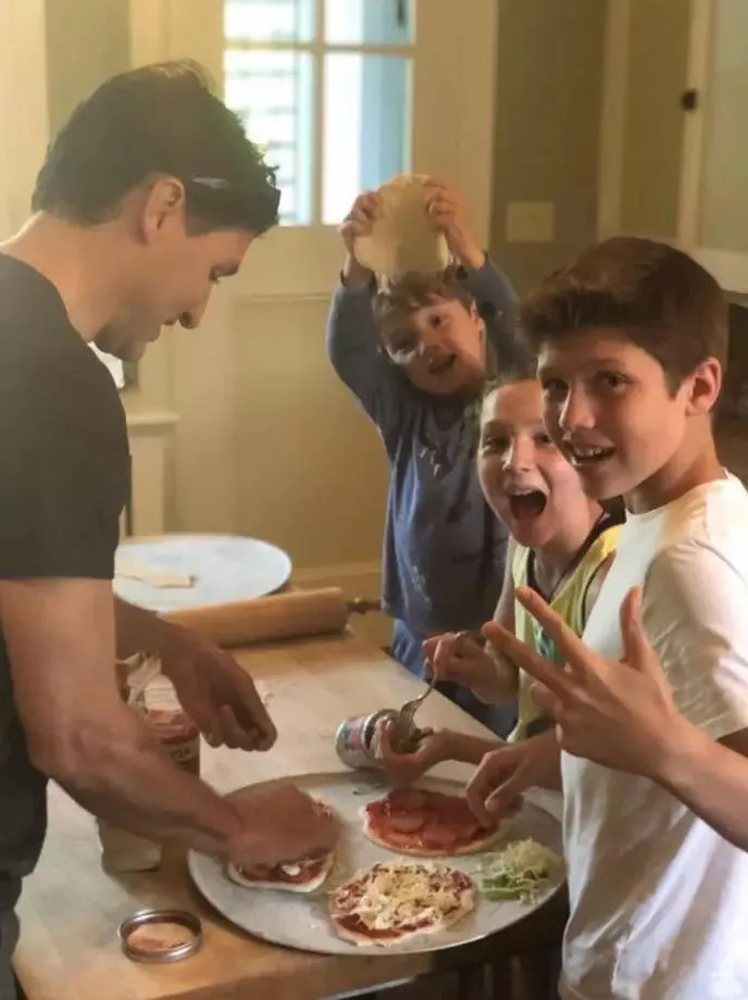此外,老婆確診,保姆停工,特魯多更是隔離在家單挑三娃,給三個(gè)娃準(zhǔn)備日常飲食、分發(fā)玩具、陪同玩耍、洗澡……