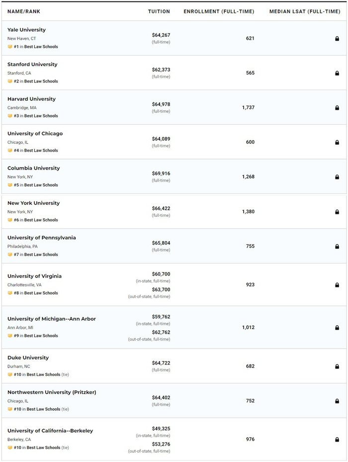另外,最近幾年美國(guó)法學(xué)院入學(xué)率很低,有興趣的學(xué)生可以考慮。TOP10具體排名如下: