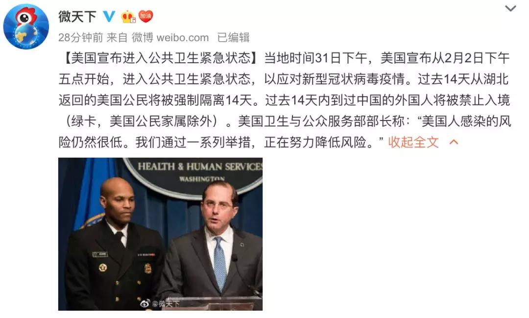 同時(shí),從2月2日開(kāi)始,任何在過(guò)去14天內(nèi)到過(guò)中國(guó)湖北省的美國(guó)公民入境美國(guó)時(shí),都將被強(qiáng)制隔離14天。