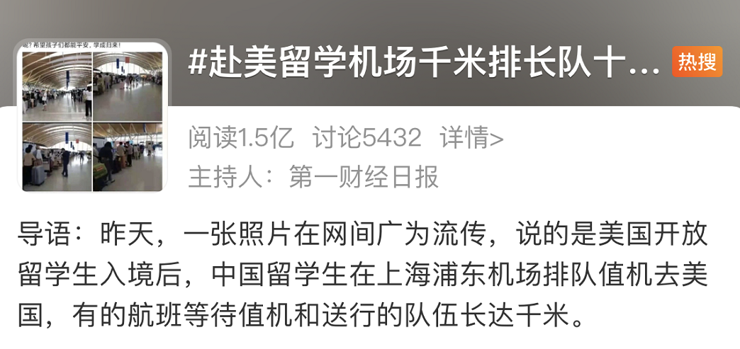 隨著開學(xué)季臨近,出國(guó)留學(xué)的返校旺季也來了,具體有多“旺”呢?“赴美留學(xué)機(jī)場(chǎng)排千米長(zhǎng)隊(duì)”這個(gè)話題,直接沖上熱搜榜!而且赴美商務(wù)艙更是再現(xiàn)10萬的高票價(jià)!