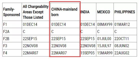 表B是“可以遞交申請的最早日期(遞件排期)”(Dates for Filing Applications),即假如可用的情況下遞交I-485的排期。如果您的優(yōu)先日在表B之前,您就可以進(jìn)行I-485的遞交動作。