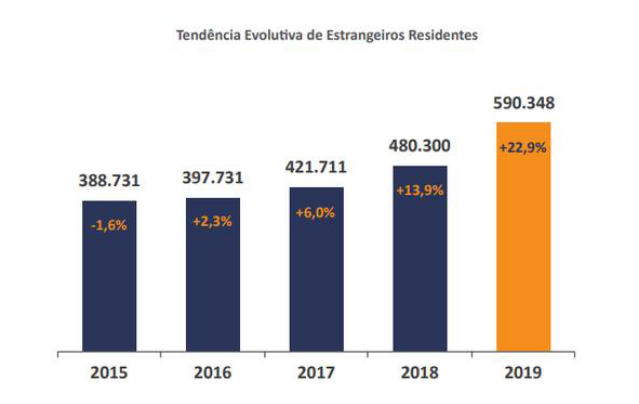 近日,葡萄牙移民局(SEF)發(fā)布最新版《移民、邊境和庇護報告》(RIFA),報告顯示,葡萄牙外來移民總?cè)藬?shù)達590,348名,創(chuàng)下自1976年以來的最高值。