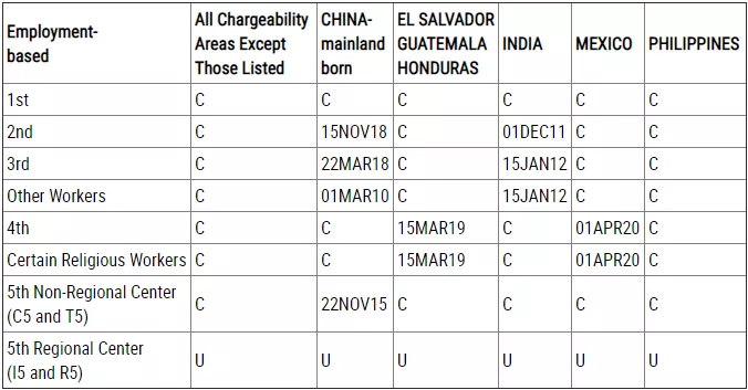 EB-5直投類別排期無變化,停在2015年11月22日;EB-5區(qū)域中心類別顯示“U”,受法案到期影響暫不可用。