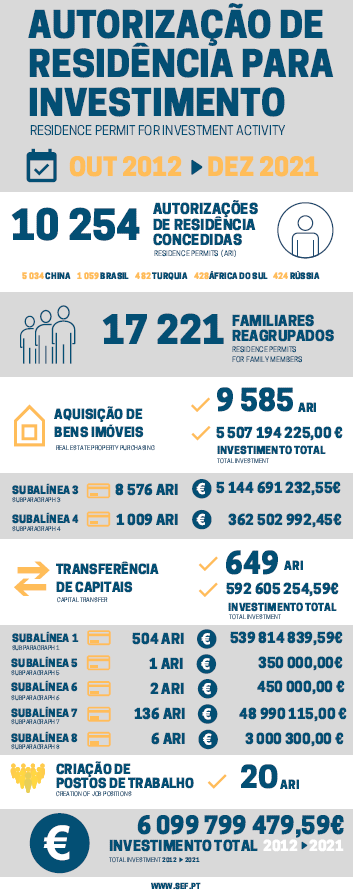 葡萄牙2021年黃金簽證數(shù)據(jù)出爐!累計(jì)吸金指數(shù)將破61億歐!