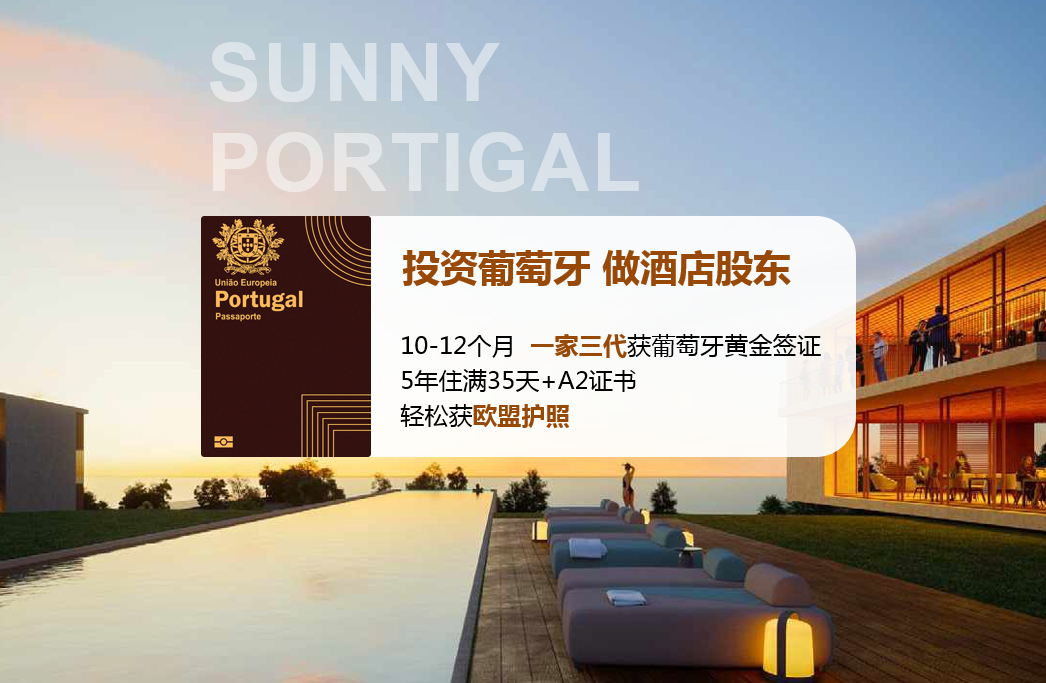 永銘國(guó)際精選葡萄牙里斯本、波爾圖、阿爾加維等熱門旅游地五星級(jí)酒店投資項(xiàng)目,投資28萬(wàn)歐起,一家三代獲葡萄牙黃金簽證。無(wú)持有成本、無(wú)酒店管理稅費(fèi)、無(wú)需自己打理、提供每年7天免費(fèi)住宿。