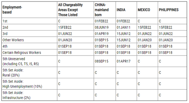 EB-1:排期為2022年2月1日,無變化