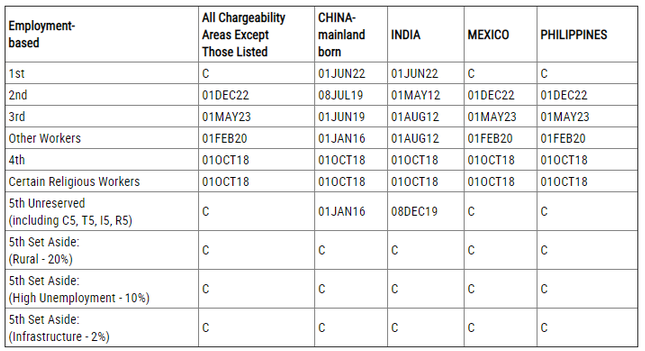 EB-3:技術(shù)類專業(yè)勞工排期為2019年4月1日,無變化;非技術(shù)勞工排期為2015年9月1日,前進(jìn)139天