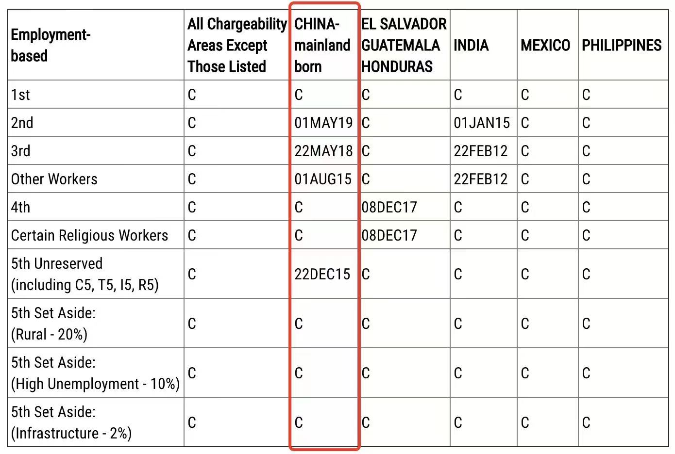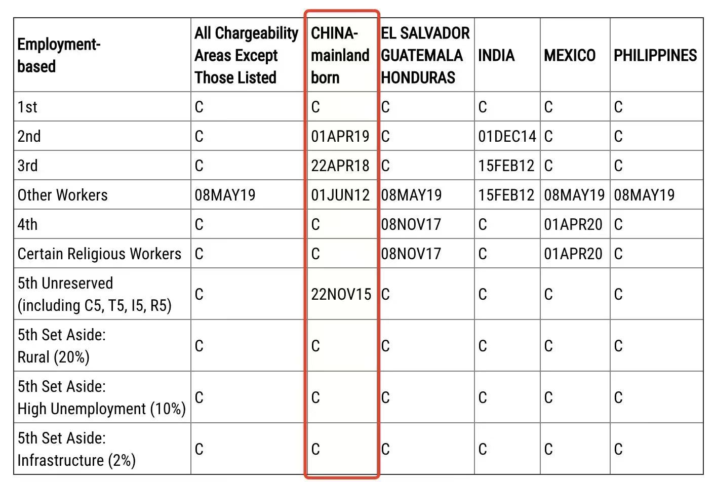 ·EB-5鄉(xiāng)村、高失業(yè)地區(qū)、基建項(xiàng)目因預(yù)留了簽證配額,目前依舊無排期。