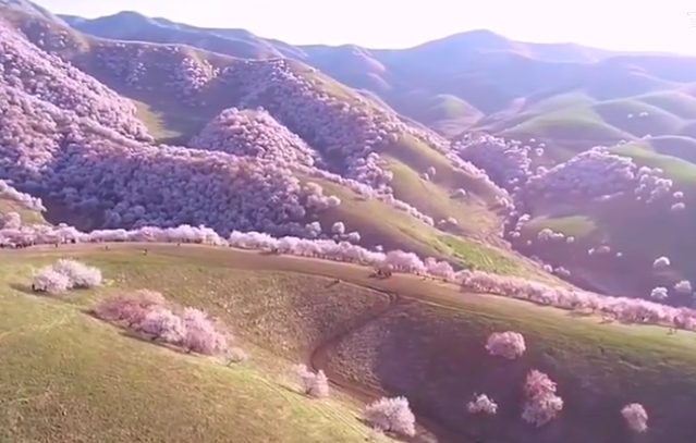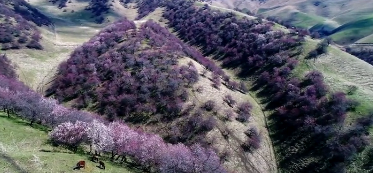 新疆杏花溝是一片中世紀(jì)遺留下來(lái)的三萬(wàn)多畝野杏林。每年4月,漫山的杏花如期盛開(kāi),