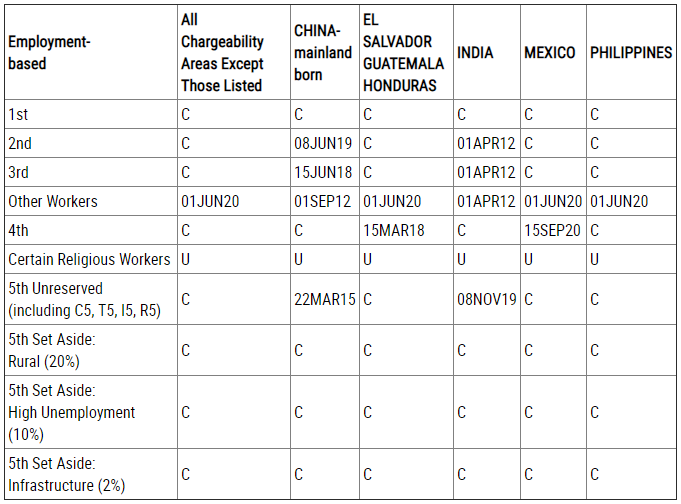 EB-5預(yù)留類別(農(nóng)村項目、高失業(yè)率項目、基建項目):無排期。