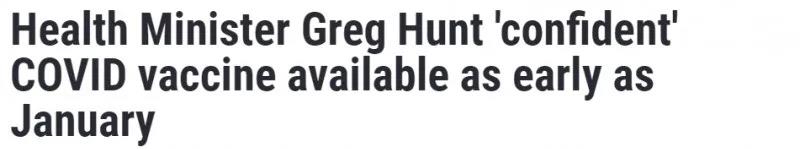 近日,澳洲聯(lián)邦衛(wèi)生部長Greg Hunt透露,澳人最快可在2021年1月或2月就可以接種新冠疫苗。Hunt說:“我們與昆士蘭大學(xué)和牛津大學(xué)簽署了疫苗訂購協(xié)議,分別為5100萬劑和3380萬劑!但不論到時候澳人選擇接種哪種疫苗,每人都需接種兩劑。綜合來看,我們在2021年上半年就可以收到這些疫苗。我們對2021年第一季度充滿信心和希望”。