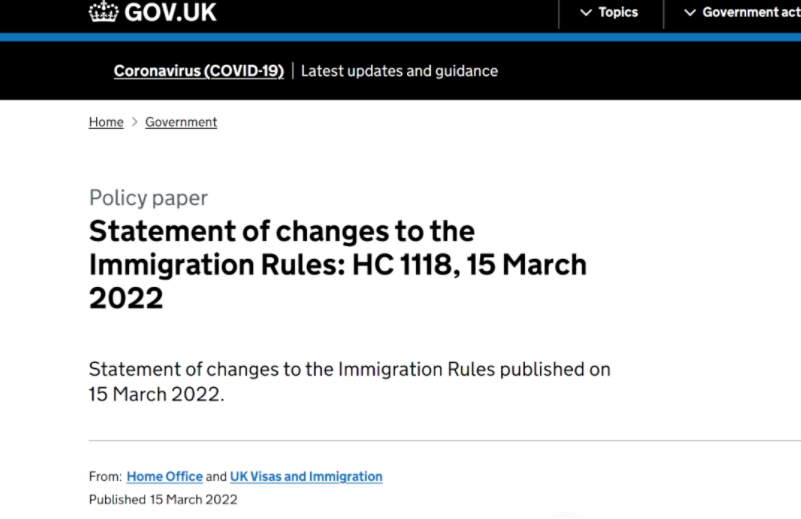 英國內(nèi)政部于當(dāng)?shù)貢r間3月15日突然拋出重磅信息,更新并發(fā)布了移民法修訂通知《Statement of Changes to the Immigration Rules: HC 1118》。根據(jù)這份內(nèi)政部提交給議會的移民法規(guī)修訂通知,多項(xiàng)移民類別政策有重大調(diào)整,其中涉及到大家尤為關(guān)心的英國首席代表簽證類別(Sole Representative Visa)。如果該移民法規(guī)的修訂被議會正式通過,則該類別的簽證申請通道將于2022年4月11日上午9點(diǎn)正式關(guān)閉。