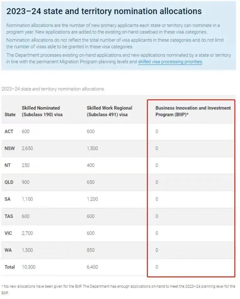 此外,各州投資移民配額全部為零!本財(cái)年澳洲投資移民通道全部關(guān)閉,無(wú)任何邀請(qǐng)配額。