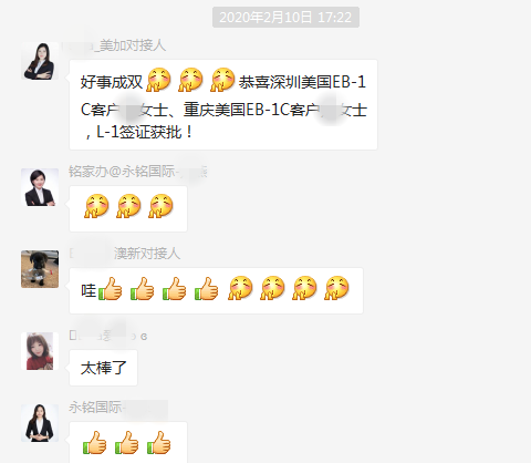 重慶貴賓客戶L女士美國EB-1C項(xiàng)目L-1簽證獲批
