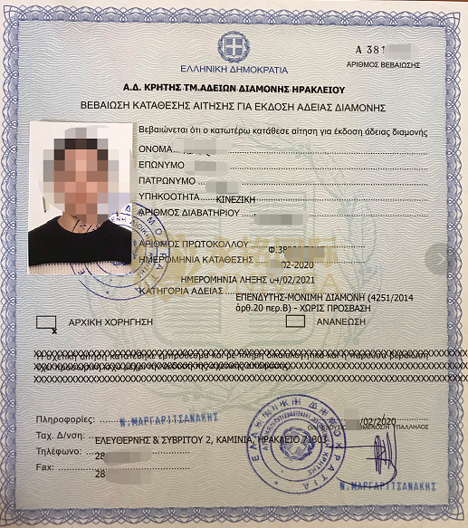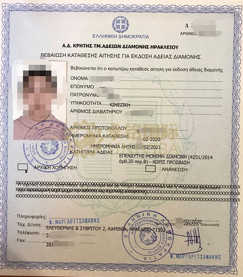 成都貴賓客戶Z先生一家獲批希臘藍(lán)紙