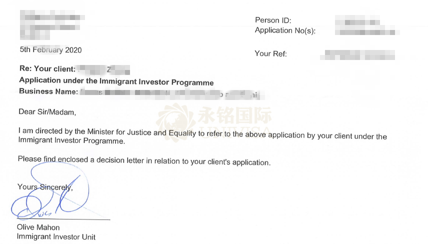 上海貴賓客戶Z先生一家獲批愛爾蘭最終批復(fù)函
